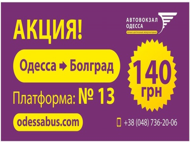 Одесса-Болград и Болград-Одесса - всего 140 грн!